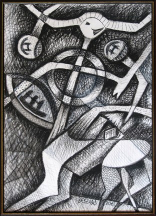 Rituális tánc- egyedi grafika-(szén és grafit technika)