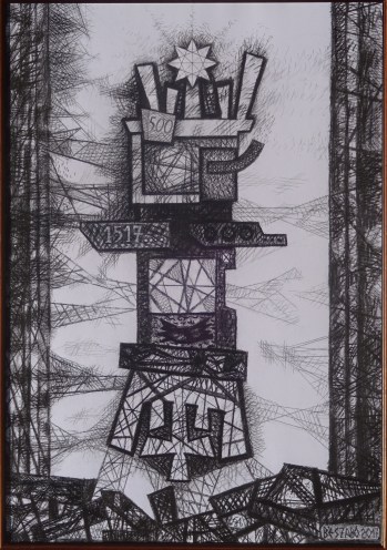 Cselekvő hit III. (Szeretet-ételosztás III.)-szén és pit-kréta rajzom