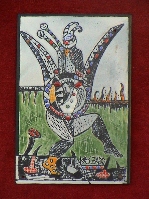 2. Kecskés-pusztai rítus-tánc c. festett zománc sgraffito technika